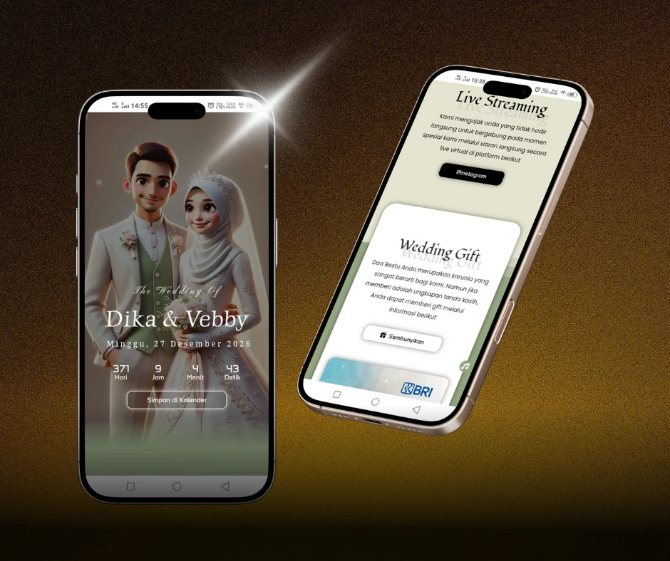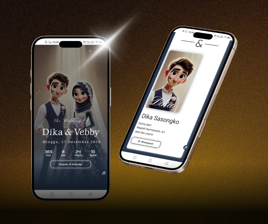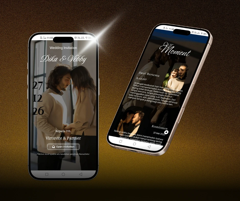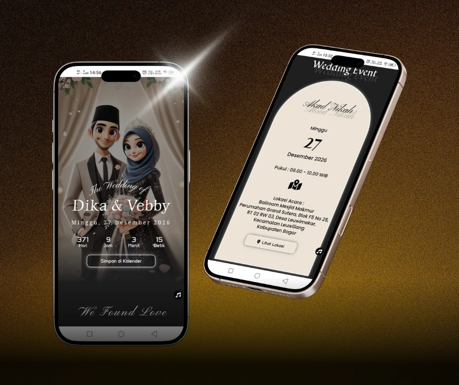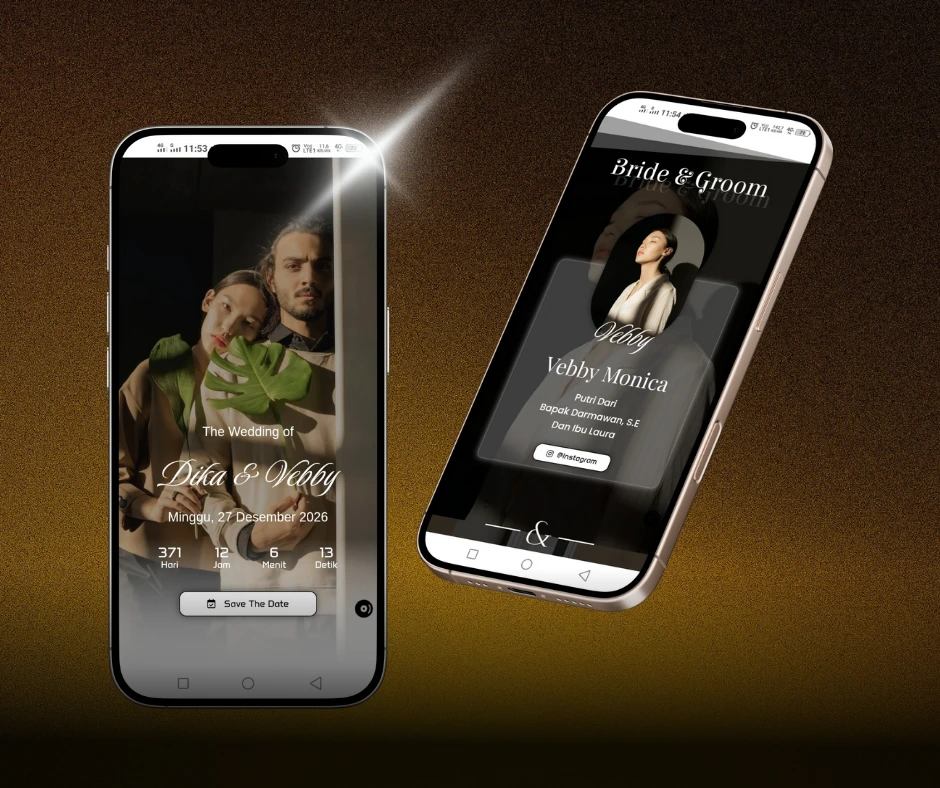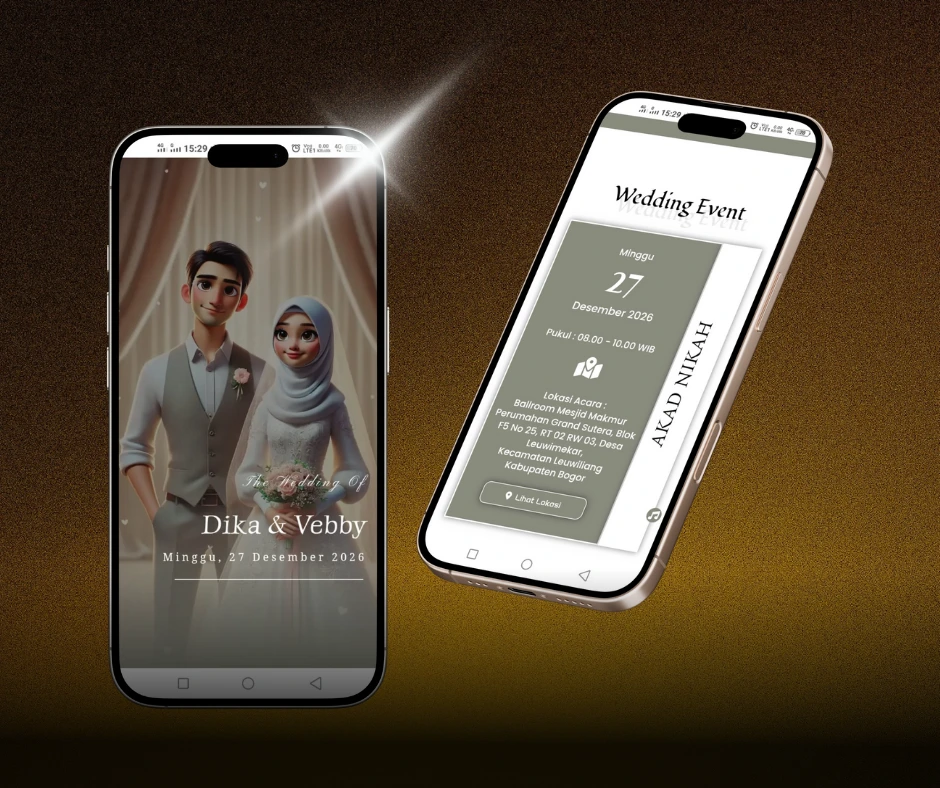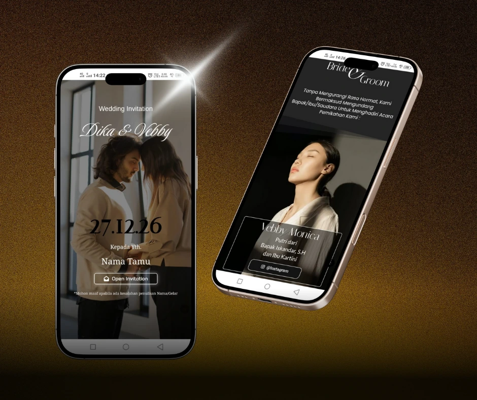 Desain undangan digital mewah dengan visual eksklusif, detail menawan, dan nuansa premium untuk momen istimewa yang berkelas.